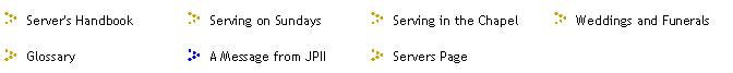 referring to the baptismal gown, whose profound meaning Saint Paul clarifies: "For all of you who were baptized into Christ have clothed yourselves with Christ" (Galatians 3:27). Even if you, dear altar servers, can no longer fit into your baptismal gown, you have put on [the clothing] of altar servers. Yes, baptism is the point of departure of your "authentic liturgical service," which places you next to your bishops, priests and deacons. [I]n the liturgy, you are much more than simple "helpers of the parish priest." Above all, you are servers of Jesus Christ, of the eternal High Priest. Thus, you, altar servers, are called in particular to be young friends of Jesus. Be determined to go deeper and to cultivate this friendship with him. You will discover that in Jesus you have found a true friend for life. The altar server often has a candlestick in his hand. How can one not think of that which Jesus says in the Sermon on the Mount: "You are the light of the world" (Matthew 5:14). Your service cannot be limited to the inside of a church. It must shine in everyday life: in school, in the family, and in different realms of society. Because, whoever wishes to serve Jesus Christ inside a church must be his witness everywhere. Dear young people! Your contemporaries wait for the real "light of the world" (see John 1:9). Do not hold your candlestick only inside a church, but carry the light of the Gospel to all those who are in darkness and are living through a difficult time in their life. I have spoken of friendship with Jesus. How happy I would be if something more sprang from this friendship! How beautiful it would be if some of you were to discover a vocation to the priesthood! Jesus Christ has urgent need of youths who will be at his disposition with generosity and no reservations. Moreover, might not the Lord also call one or two of you girls to embrace the consecrated life to serve the Church and the brothers and sisters? Even for those who wish to be united in marriage, the service of altar servers teaches that a real union must always include readiness for reciprocal and free service. -Pope John Paul II General Audience, August 1, 2001, the 1,000th of his pontificate |